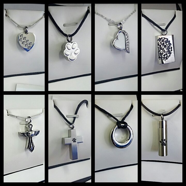 If your cat, dog or another pet has recently passed away and you’re getting it cremated, you can have some of the remains put into a piece of jewellery. This allows you to keep a small part of your pet with you every single day. And we can divide the remains into multiple pieces too. For example, if your dog has recently passed and you want a necklace for yourself and another for your daughter, we would be more than happy to take care of it for you.
