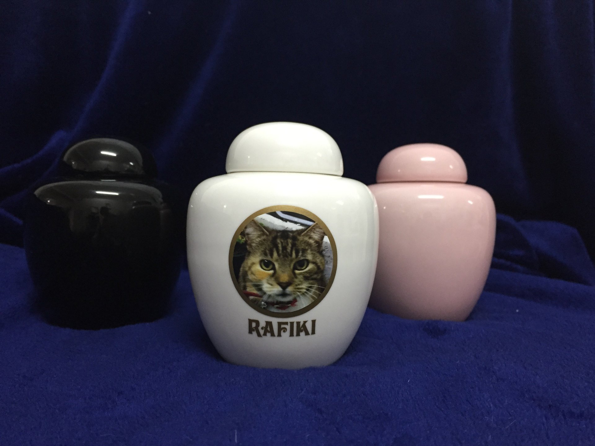 Our standard cremation service includes your pets ashes returned in either a pottery, ceramic and terra cotta urn. Included in the package are a personalised ‘Certificate of Cremation’ and a prayer for you to keep. To make your package really personal, you can provide us with a precious photo of your pet.
